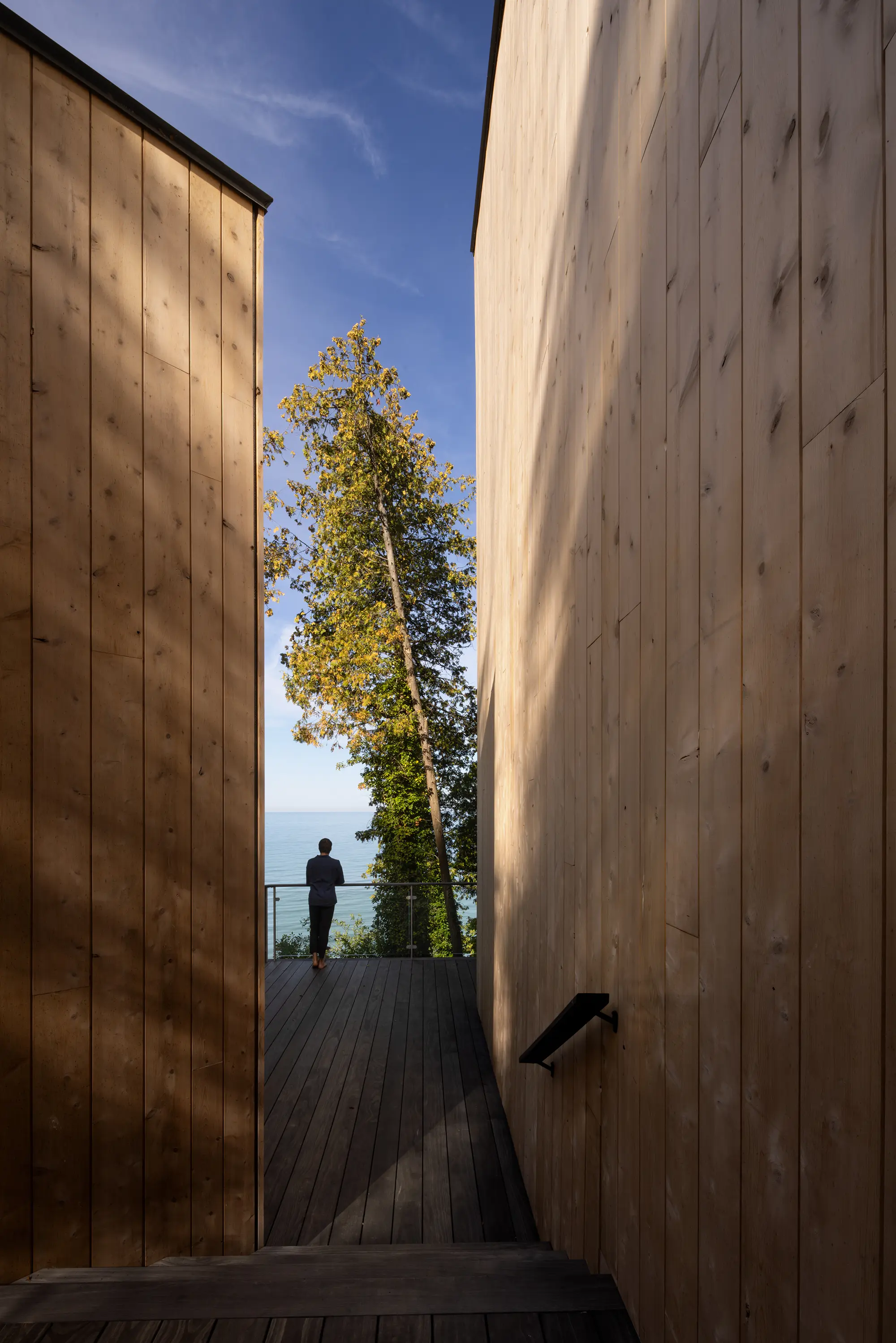 Cedar’s Kin is characterized by gentle shifts, stepped volumes, and the sequences they create. It is an architecture shaped by its setting: responsive to light, framed by the forest, and balanced on the steep terrain characteristic of Lake Huron’s eastern shore.