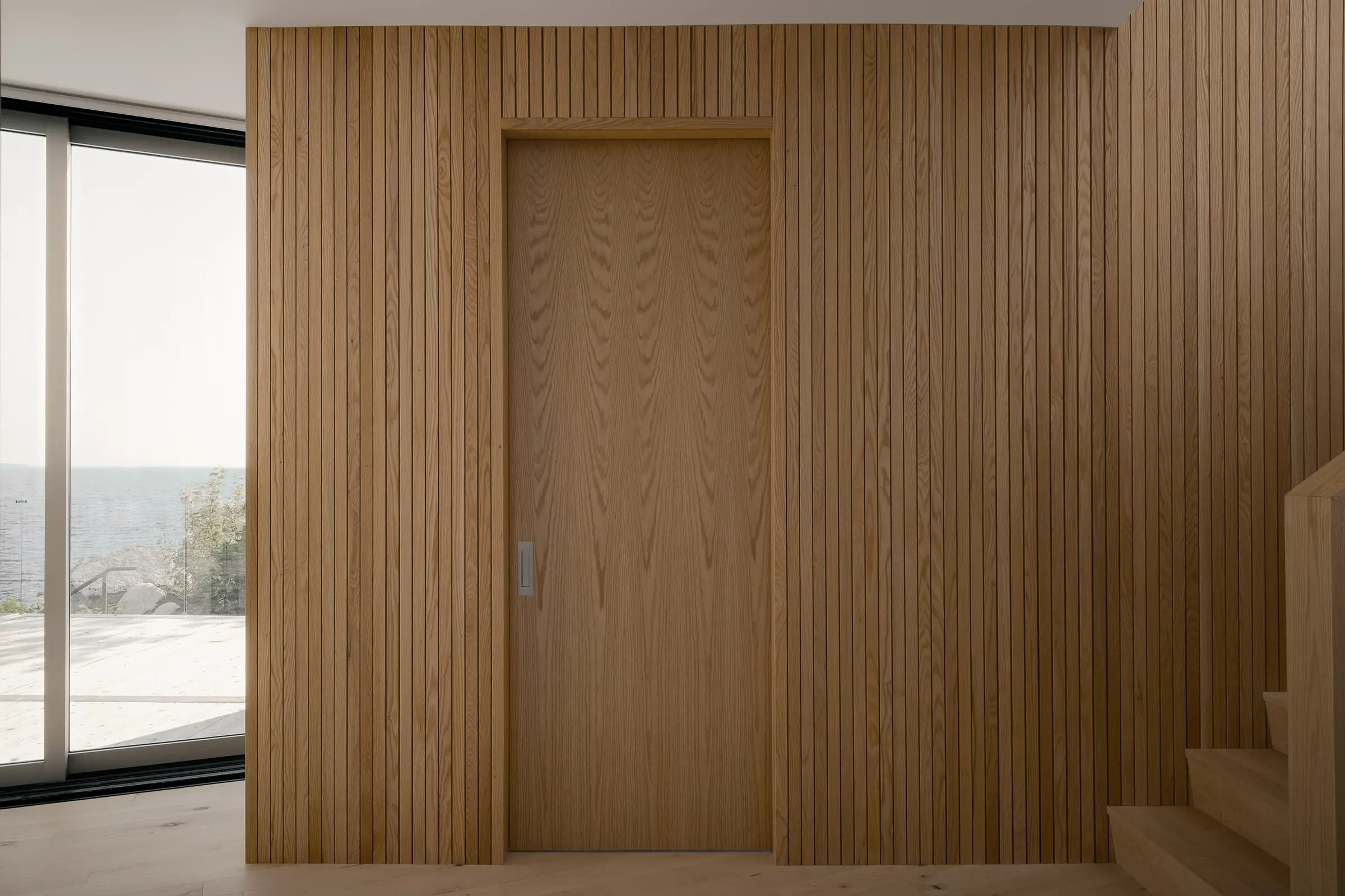 East River Residence is a home suspended within landscape—a quiet settlement on the coast that listens to the land, the weather, and the shifting horizon.