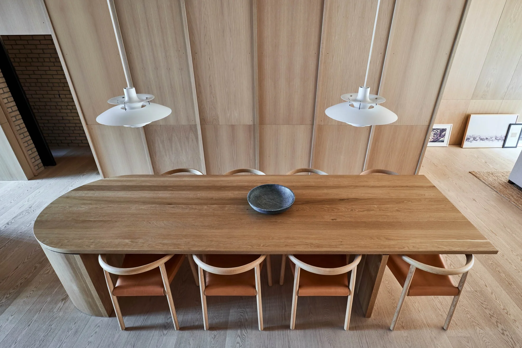 Designed in collaboration with Prince Edward Island native and craftsman Brodye Chappell, the OG House table was designed to be a gentle yet heavy totemic wood volume amidst a wood clad space. Composed of a curving top with a tapered edge sitting on a Japanese inspired base which seemingly emerges from the ground.