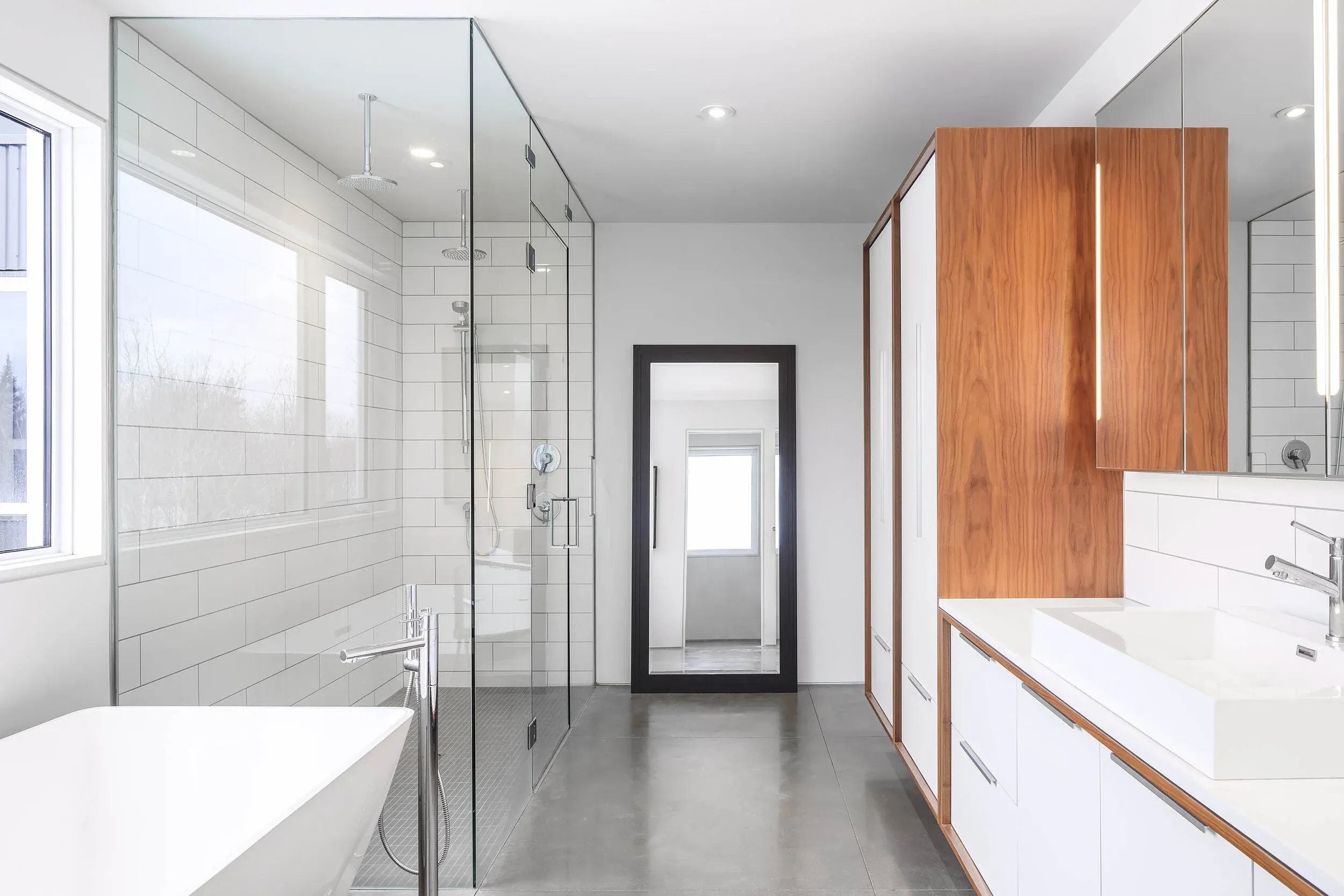 Set atop one of the highest sea-side plateaus in the Halifax area, the residence has clear views of both Point Pleasant Park and the open water. Formally, the home twists and turns towards the two critical views, providing unique views from within different zones of the home. The l-shaped scheme creates an internal court and driveway approach, as well as a variety of stunning views of itself in the foreground of the long and wide view.