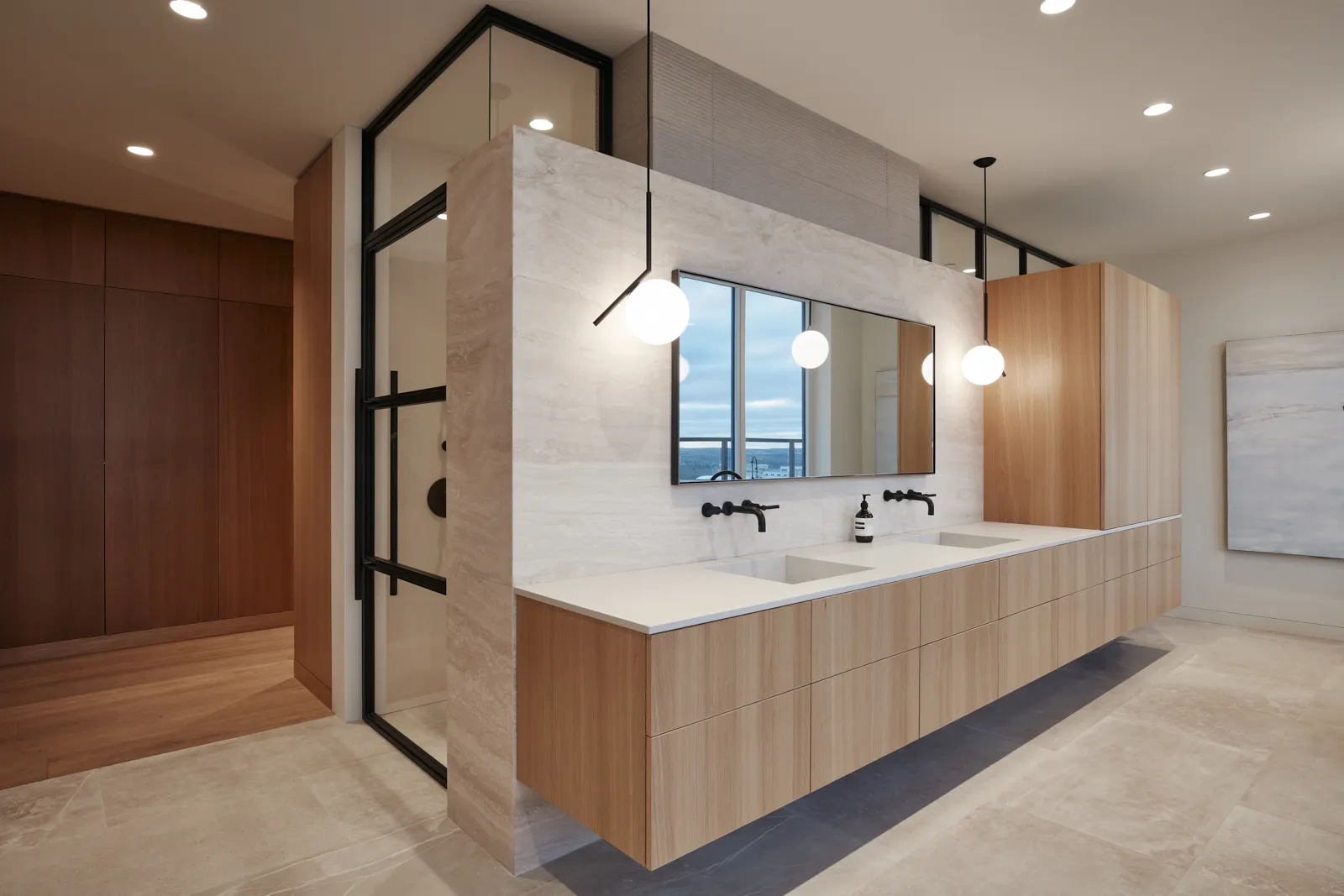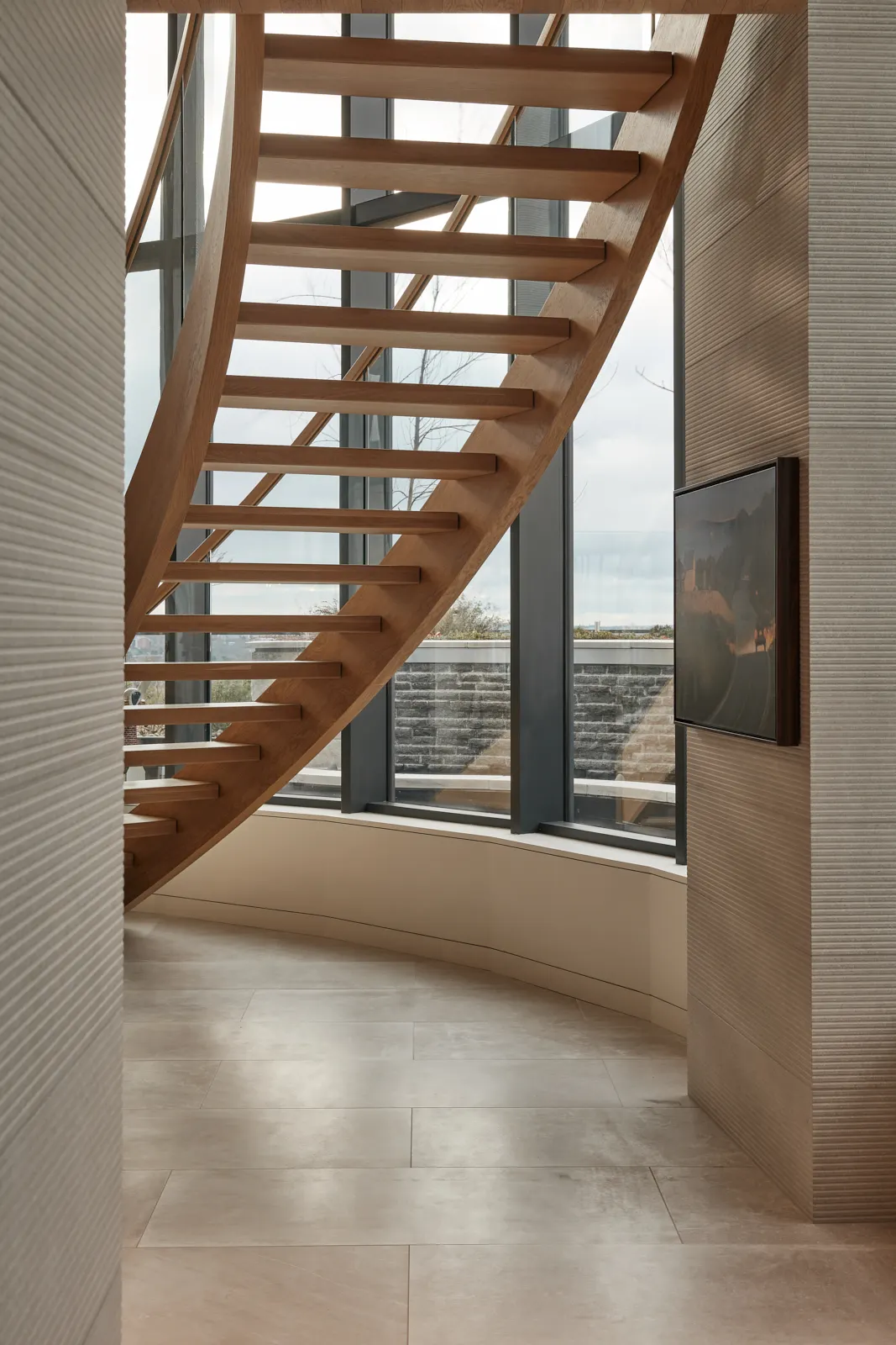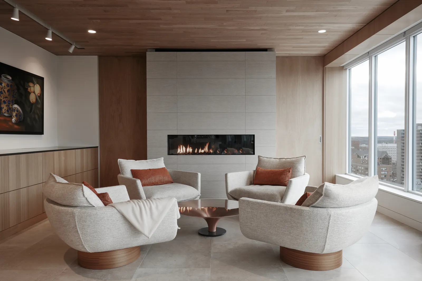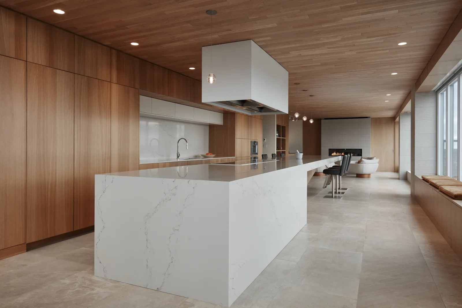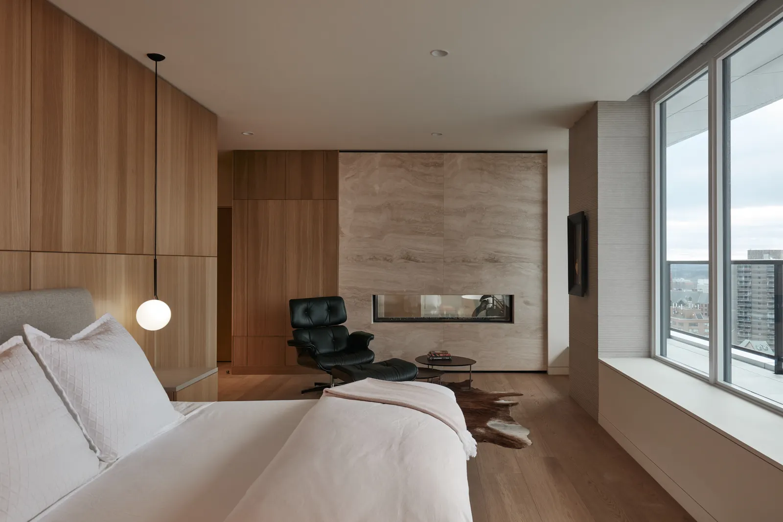 Overlooking the Halifax Citadel, this condo renovation creates a warm and grounded interior shaped by natural materials and careful restraint. Rich stone anchors the spaces, while warm wood wraps the interior across multiple stories, connecting levels through a quiet continuity of texture and tone. Light moves gently through the home, softening the materials and revealing their depth over the course of the day. The renovation is calm and deliberate, balancing a strong sense of place with the intimacy of everyday living.